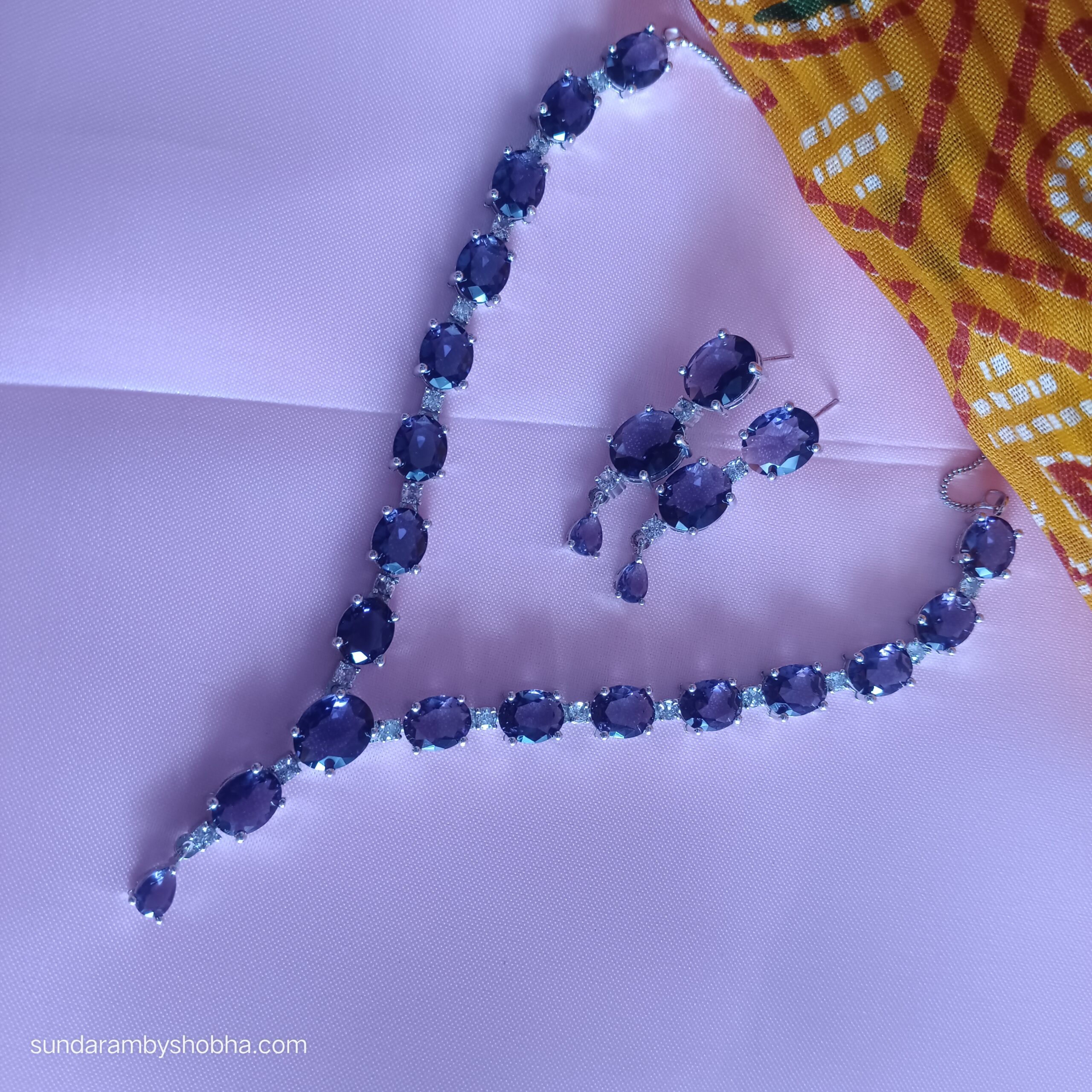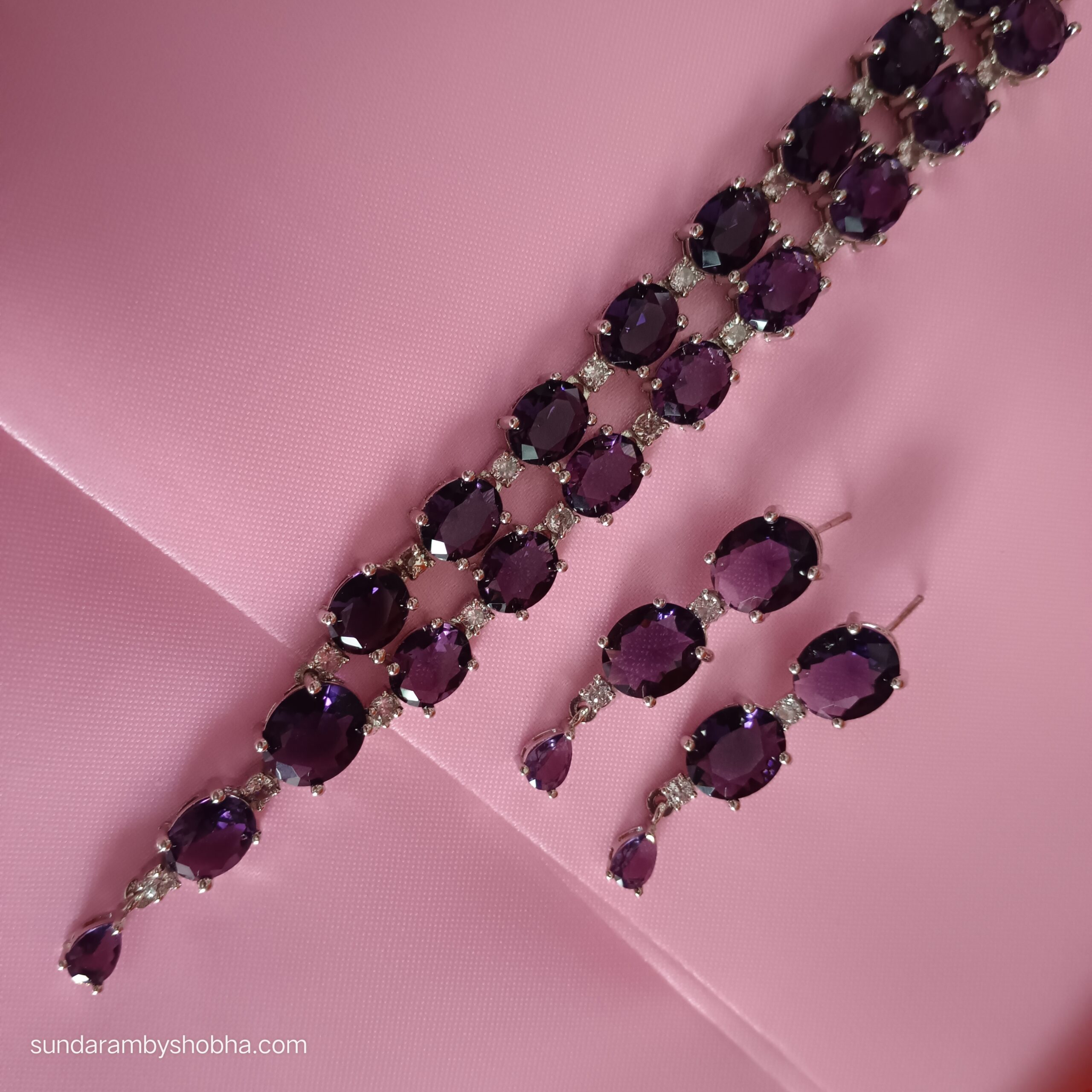 Amethyst color AD Necklace for all occasions. Suitable for gifting purpose for Women & Girls.