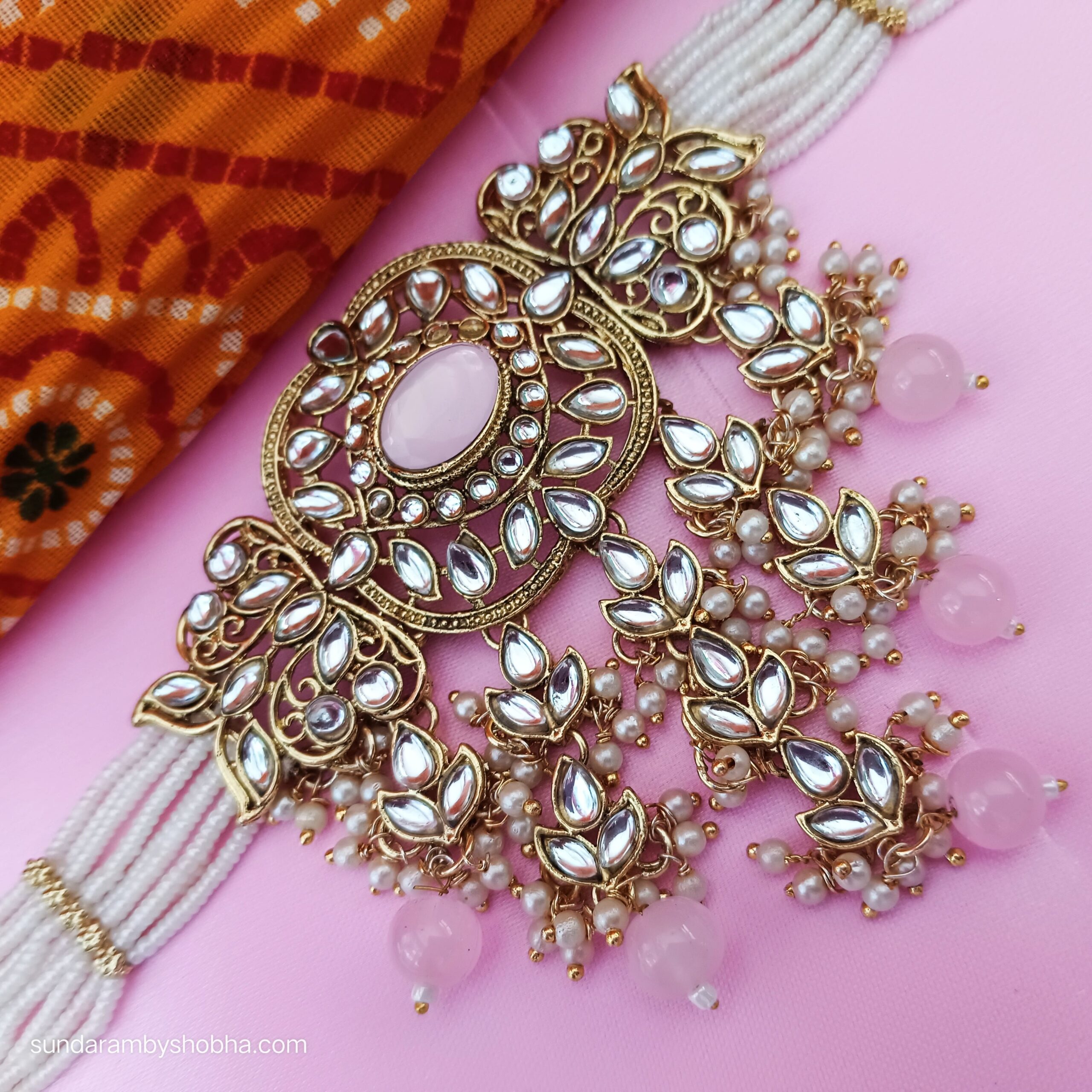 Beautiful and Elegant Pink Choker set with mini white beads and a beautiful Pendant.
