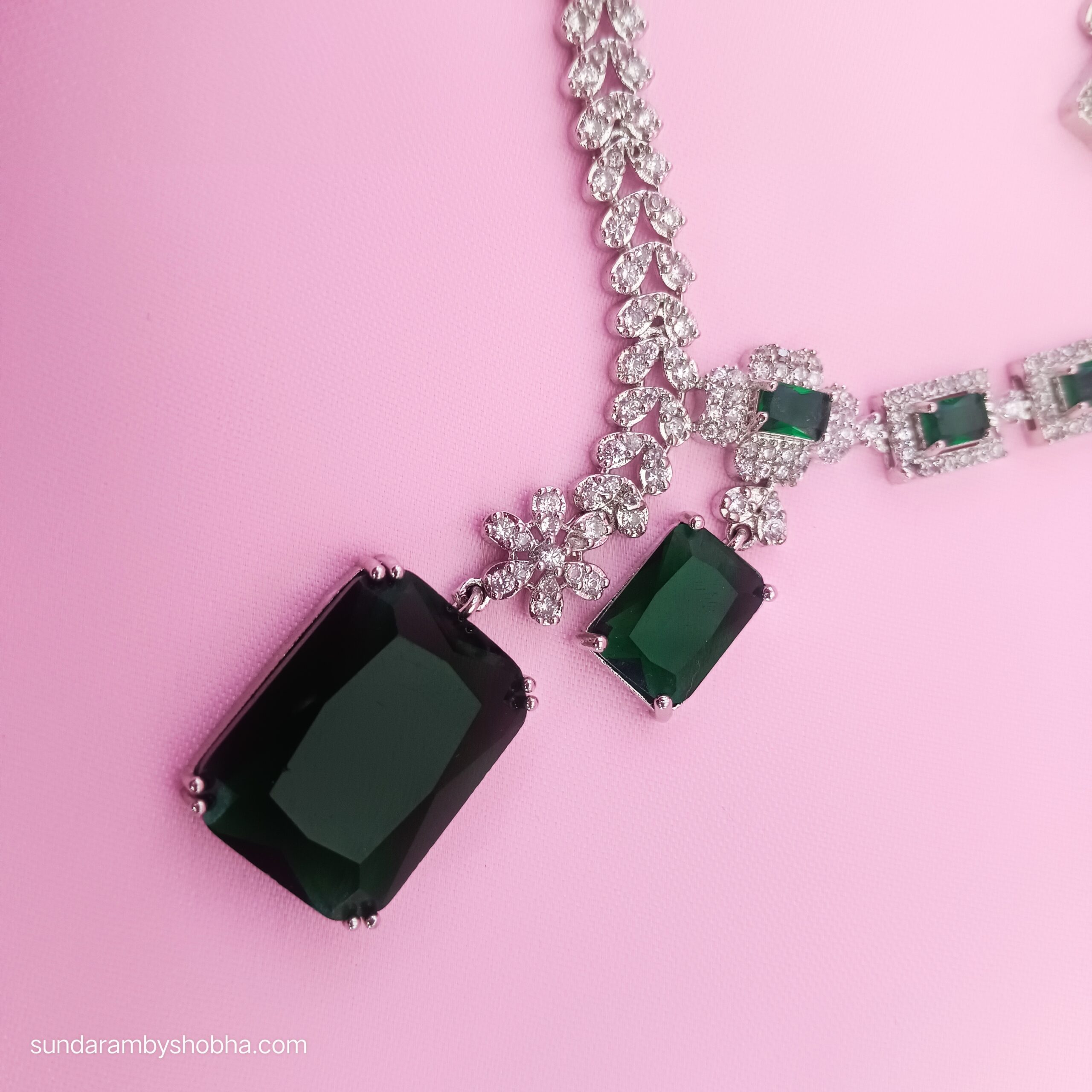 Be the first to review “Designer American Diamond Necklace with Big Green Stone Pendant”