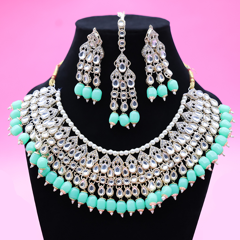 Be the first to review “Kundan Broad Neclace with Mint Green Beads”