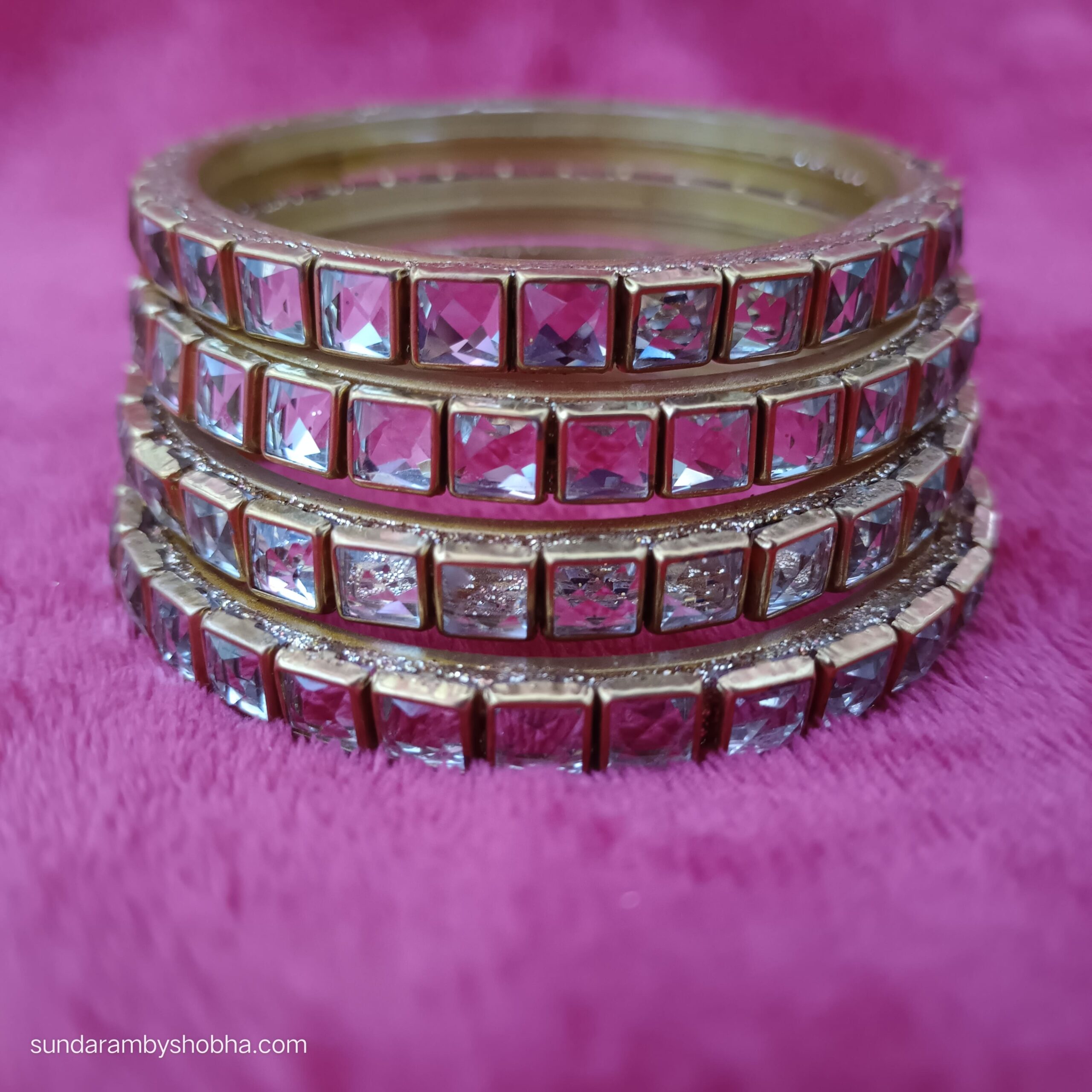 Kundan Bangles with Glass base, Set of 4.