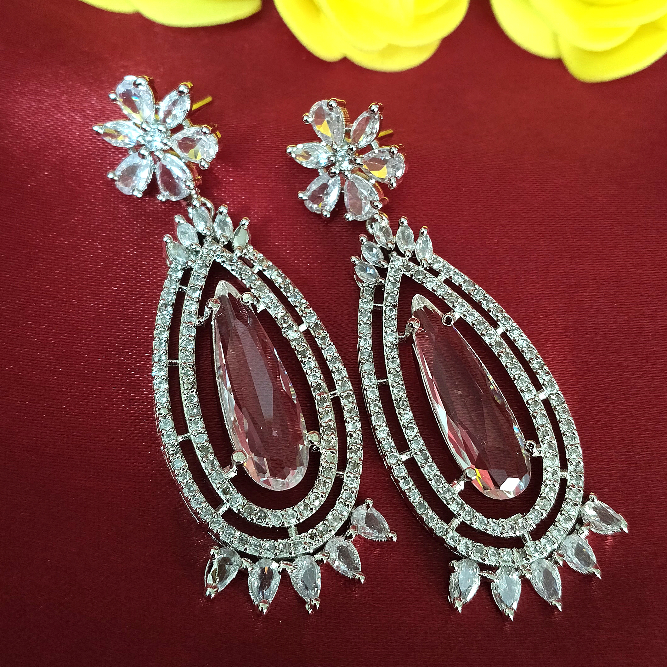 Premium Drop Shape Long Hanging Earrings with White Stone.
