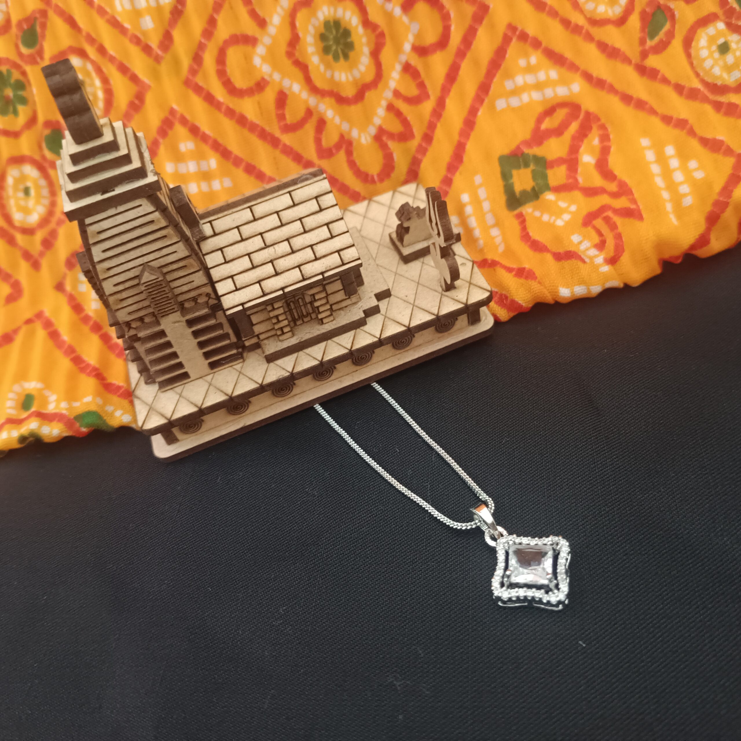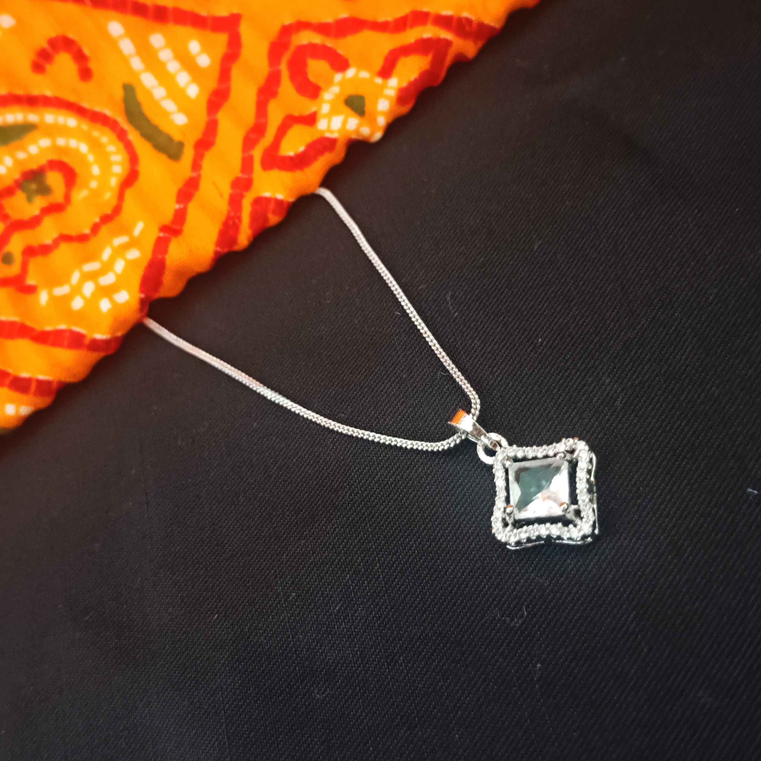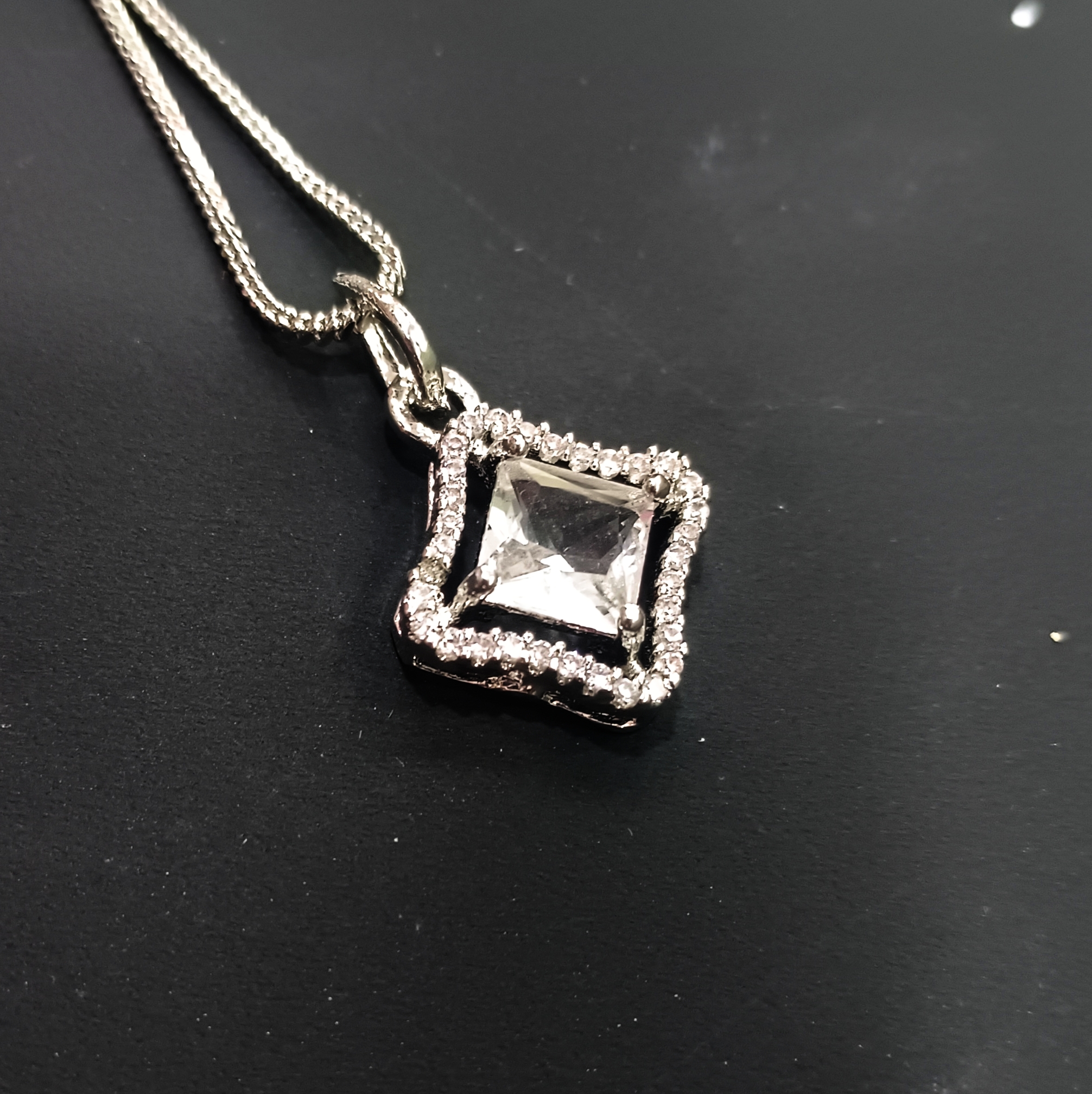 Beautiful Princess Cut white Pendant with Silver Chain.
